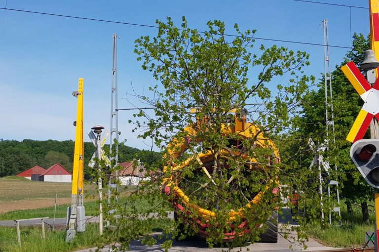 "Hej Leen, kannst du uns bei folgendem Problem helfen? Wir haben einen Eilauftrag für die schwedische Eisenbahn, wir müssen schnell eine große Anzahl von Bäumen verpflanzen. Diese müssen unter Stromleitungen hindurch, aber mit Baumverpflanzer und Baum sind wir zu hoch. Wir brauchen einen zusätzlichen Rahmen, damit der Baum horizontaler liegen kann."