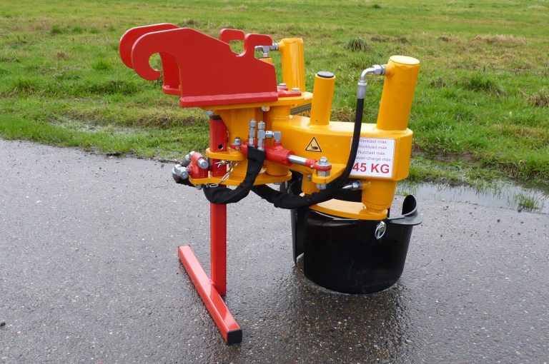 Ein Kunde hat einen kleinen Bagger mit CW-0 Schnellwechsler und einen größeren Bagger mit CW-1 Schnellwechsler. Er möchte beide Bagger für, in diesem Fall, einen Damcon KLR-300 ST Ballenstecher verwenden.