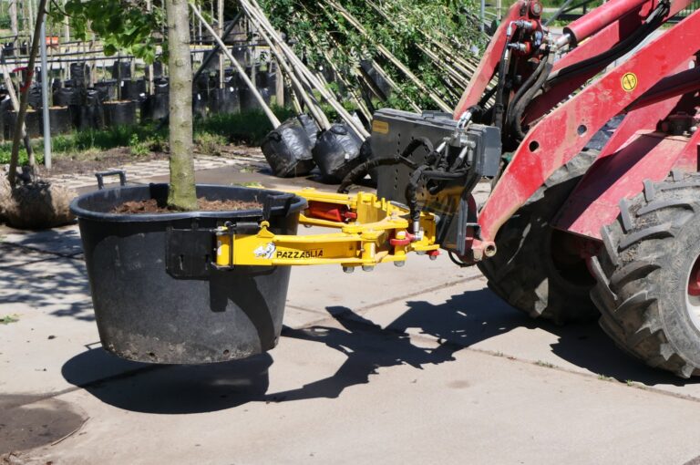 Erleben Sie den Komfort dieser Ballen-/ Topfzange, die von unserer Werkstatt auf Ihre Radlader oder Ihren Bagger gebaut werden kann.