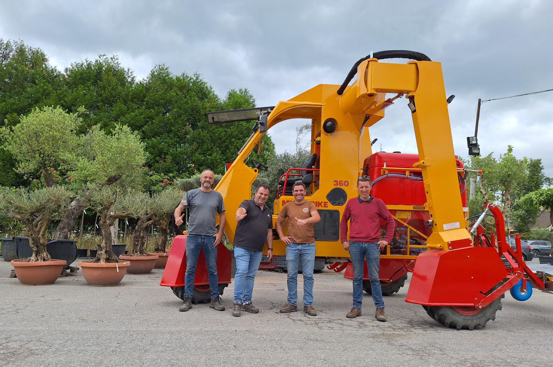 Mit 3 Kultivatoren und Spritze mit Xtra-sensitiven Spritzschirmen zur Unkrautbekämpfung in den Büschen.