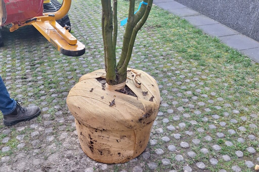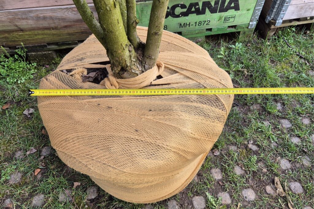 Vor kurzem haben wir bei verschiedenen Kunden Tests durchgeführt, um den Ballen von mehrstämmigen Bäumen aus Containern und aus dem Freiland zu umwickeln. Das war ziemlich spannend, denn würde die Klemme die Äste nicht beschädigen?