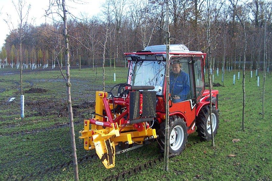 Der SN 5800 V (51 PS) und der Tony SR 8900 (74,2 PS) haben eine Breite ab 104 cm. Aber auch der Raupenschlepper Mach4 (74 PS) mit einer minimalen Breite von 130 cm eignet sich sehr für die Baumschule und den Obstbau.
