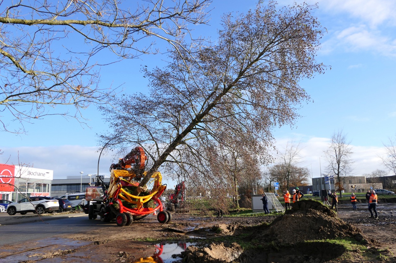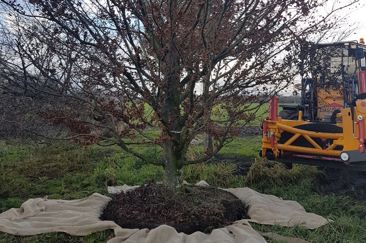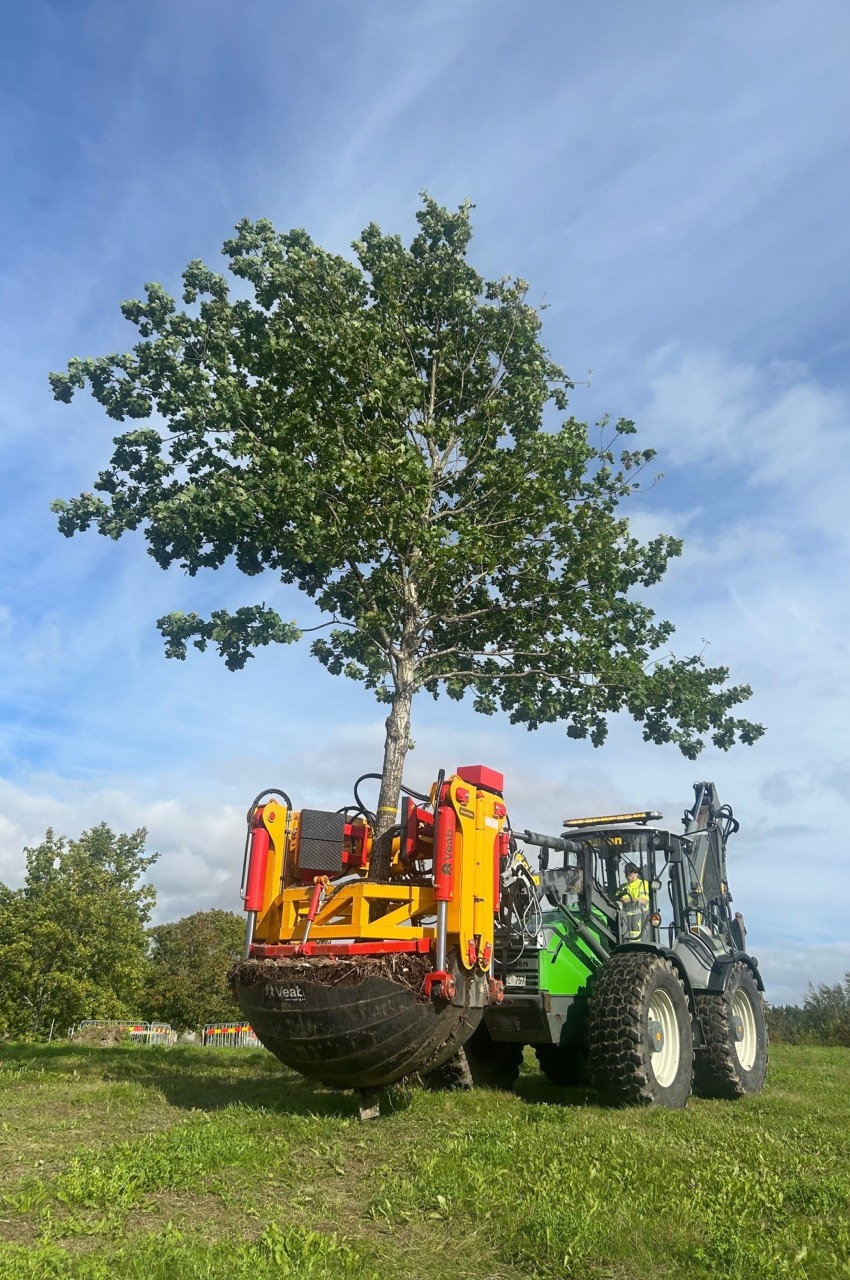 Die Maschinen eignen sich besonders für das Verpflanzen und Ausroden von großen Bäume.