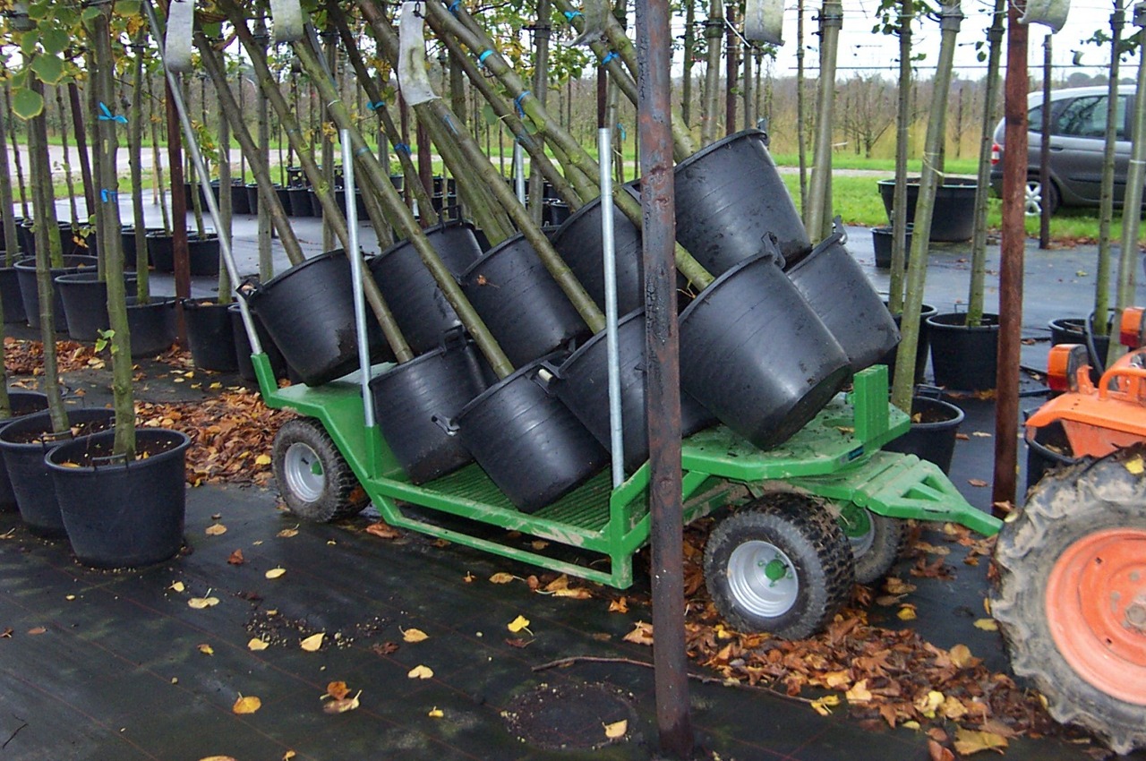Die Baumwagen eignen sich für den Transport von Containerpflanzen oder Containerbäumen, Pflanzen oder Bäumen mit Ballen oder nackten Wurzeln.