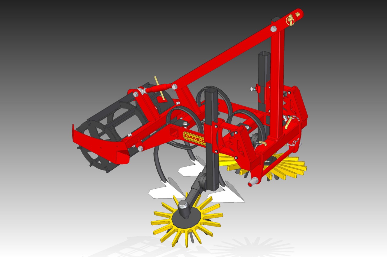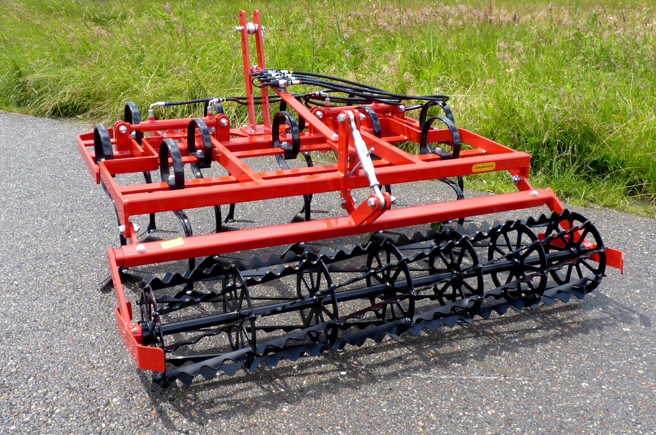 Die Kultivatoren von Damcon sind mit Gänsefußschaufel die auf S-Zinken montiert sind ausgestattet und mit einer Krümelwalze ausgestattet sind. Auch erweiterbar mit Verlängerungsstücken, Torsionshacken oder Fingerhacken.