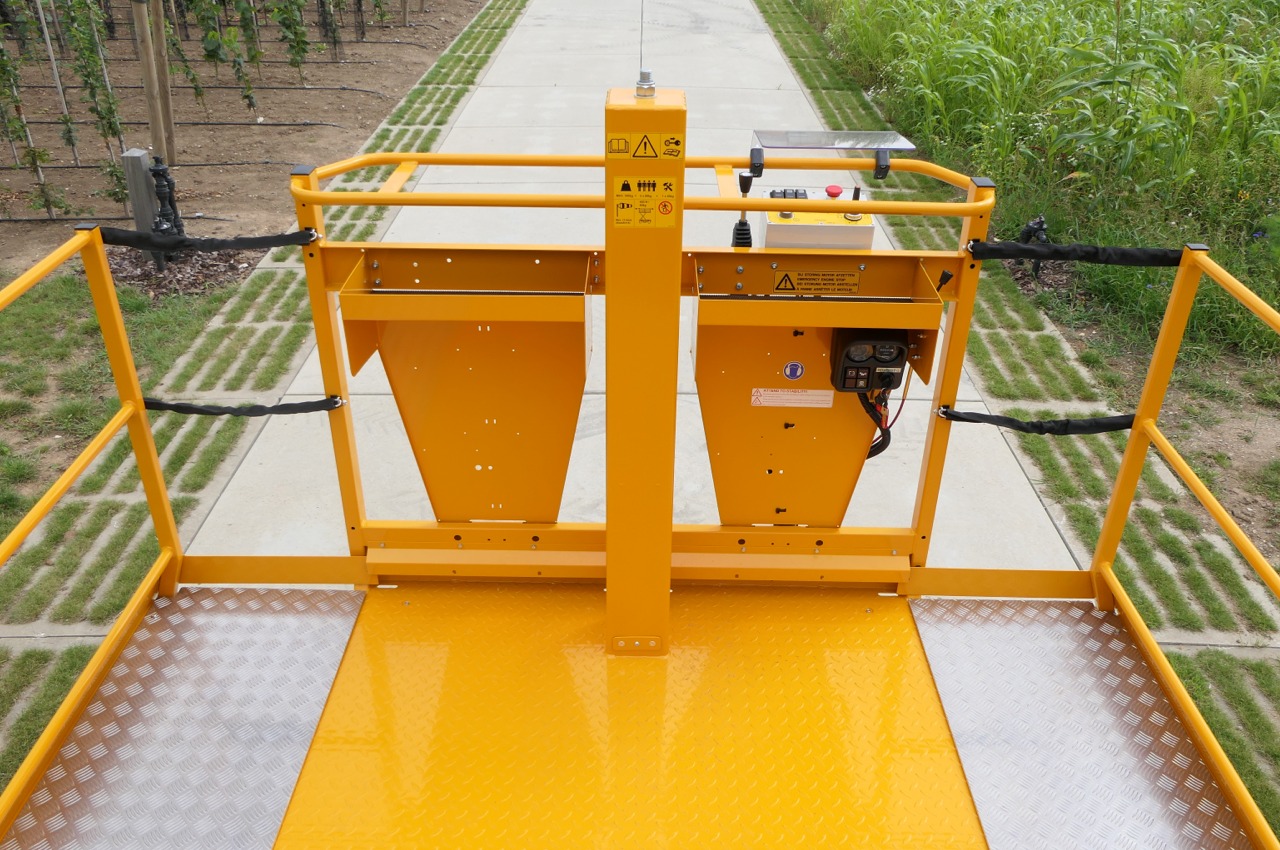 Diese Schneidebühne ist speziell für verschiedene Arbeiten im Obstbau entwickelt. Die maximale Arbeitshöhe variiert zwischen 3,10 und 3,80 Metern.