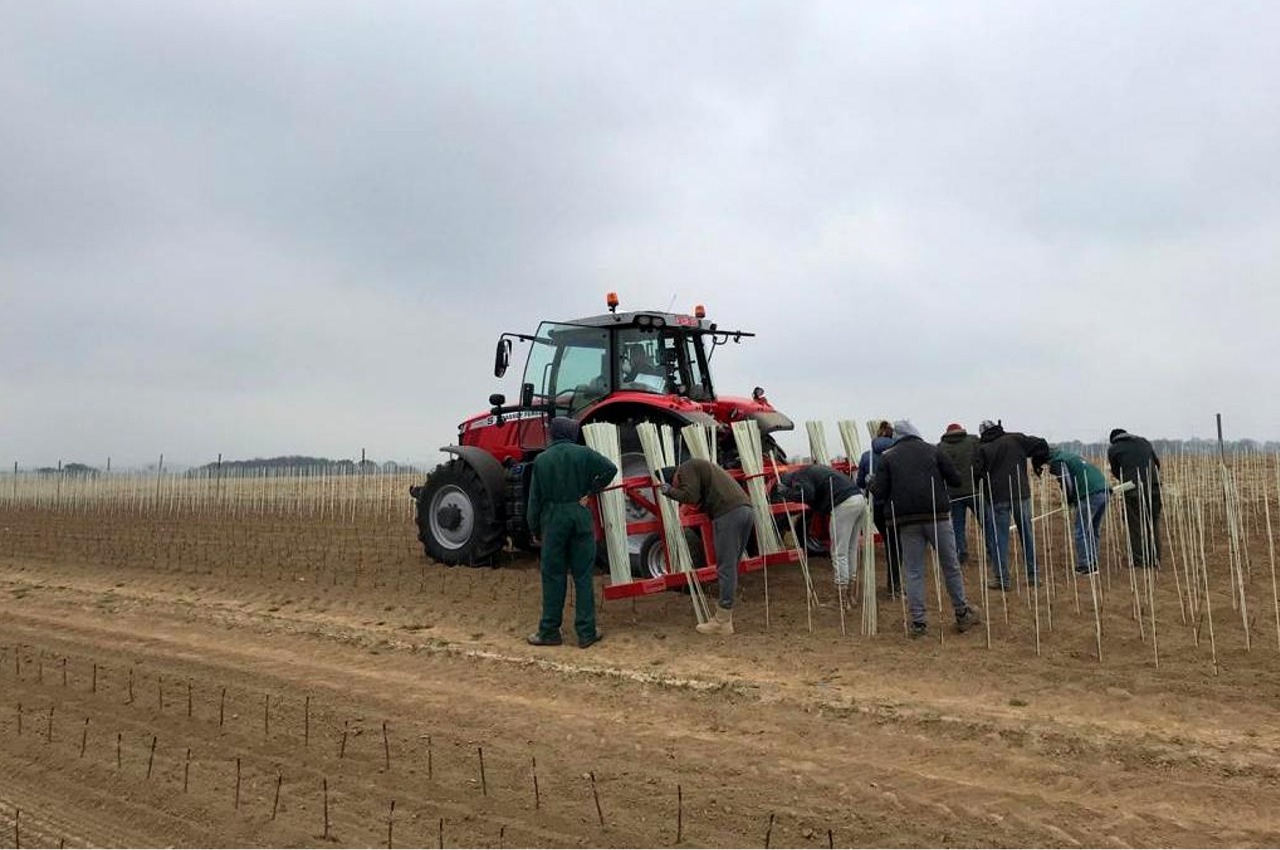 In 1 Arbeitsgang kann an 8 Baumreihen ein (Glasfaser-)Stab eingebracht werden.