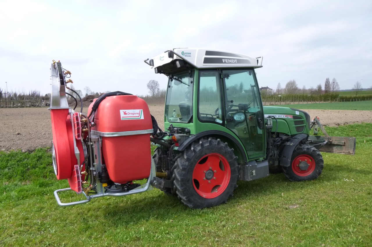 Die Dragone TAV Querstromspritze ist eine Nachläufer oder Aufsattel Querstromspritze für niedrigere Kulturen und im Obstbau.