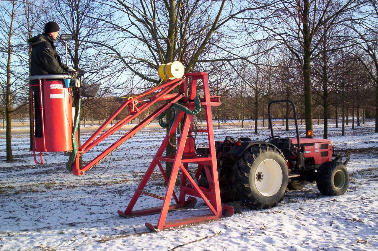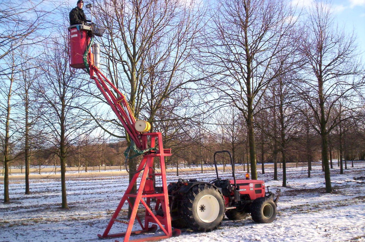 - T2-9000 Doppel Anbauschneidebühne mit einer maximalen Arbeitshöhe von 9,00 Metern.