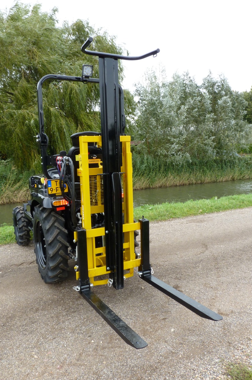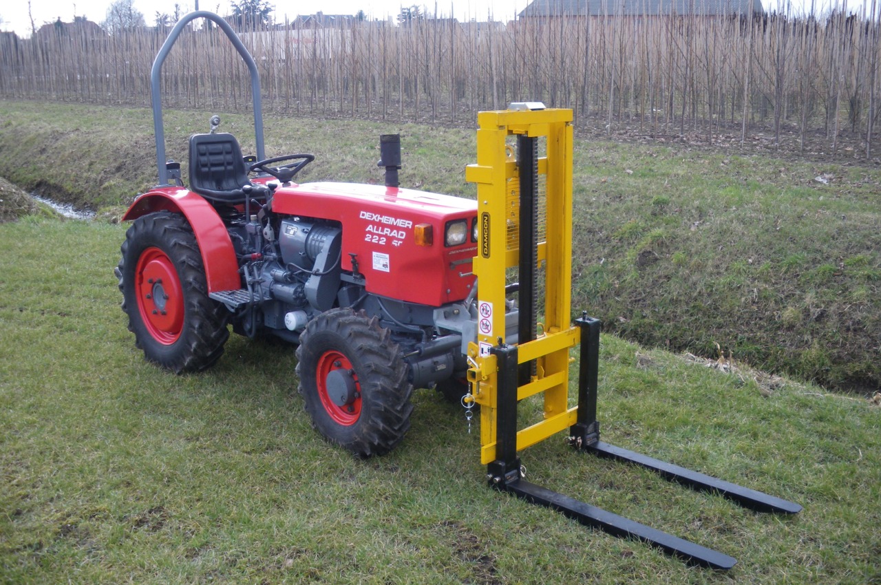 Der Gabelträger ist für Paletten geeignet. Mit dem speziellen Damcon Baumgestell können mehrere Bäume mit oder ohne Ballen transportiert werden.