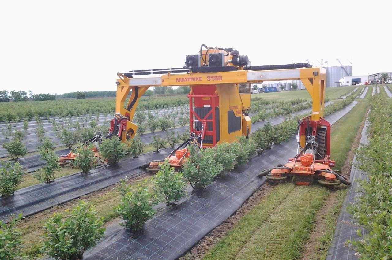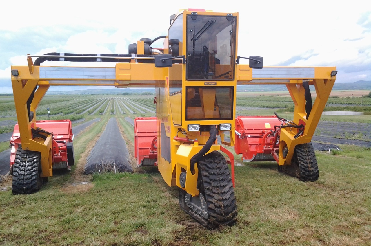 Anbaugeräte: Spritze mit Luftunterstützung, Mähmaschinen und Baumschnittgeräte.
