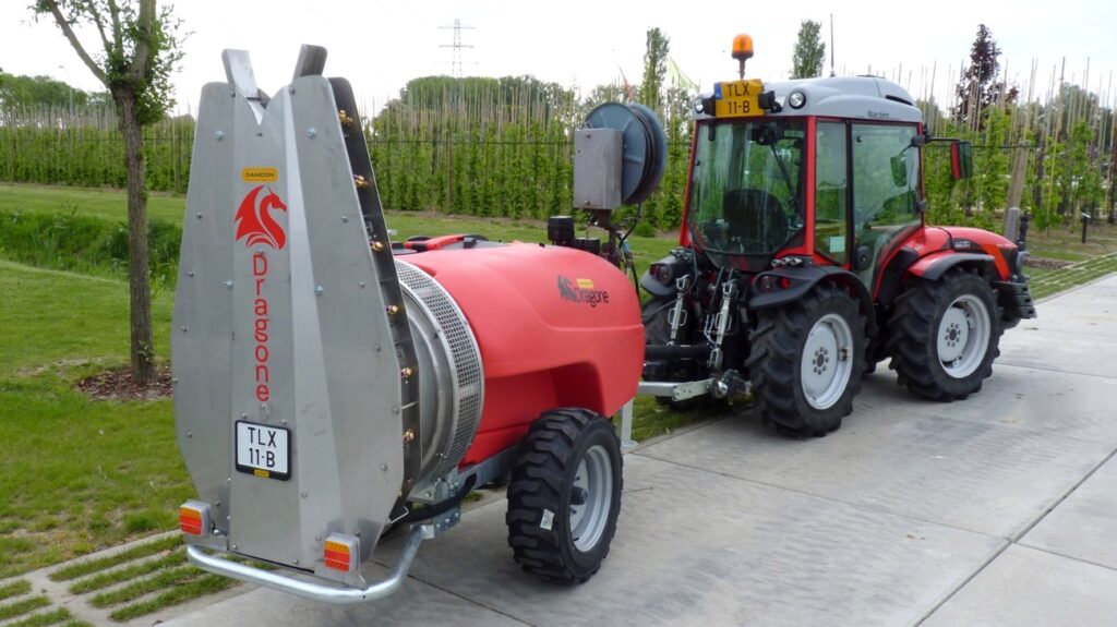 Das Dragone TAV Querstromspritze ist ein Nachläufer- und Aufsattelquerstromspritze für die niedrigen Kulturen und in Obstbau.