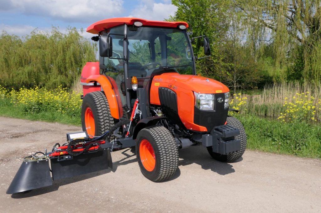 Wir haben vor kurzem 2 dieser Kubotas L2- 622 HDUA mit Dragone GR-400 Spritzen zum Spritzen unter und in der Nähe von großen Büschen geliefert.