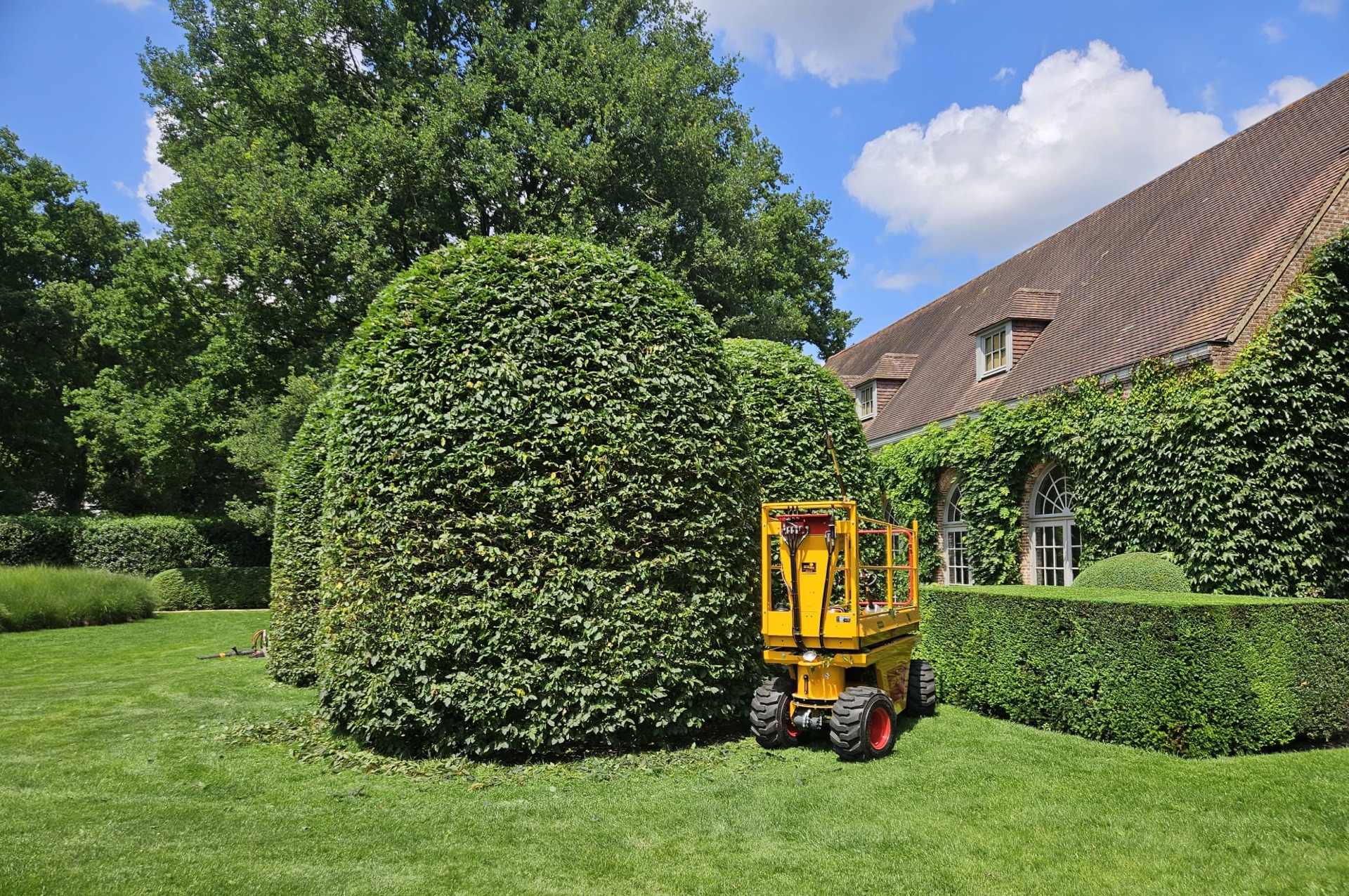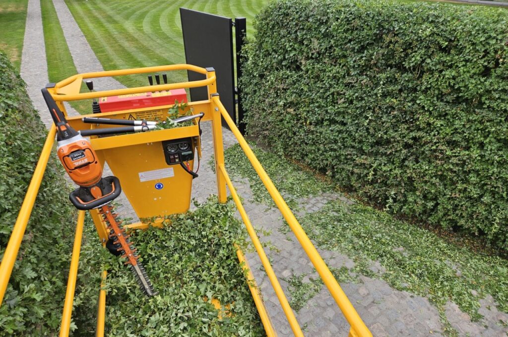 Wie man sieht, eignen sich unsere Damcon Schneidebühnen hervorragend für Schnittarbeiten im Garten.